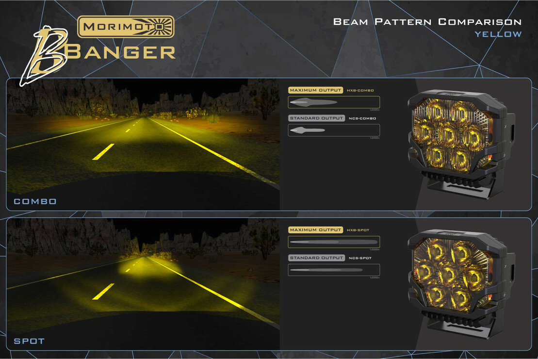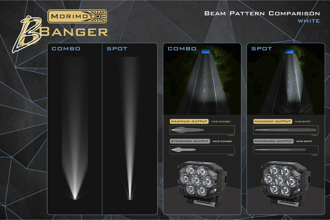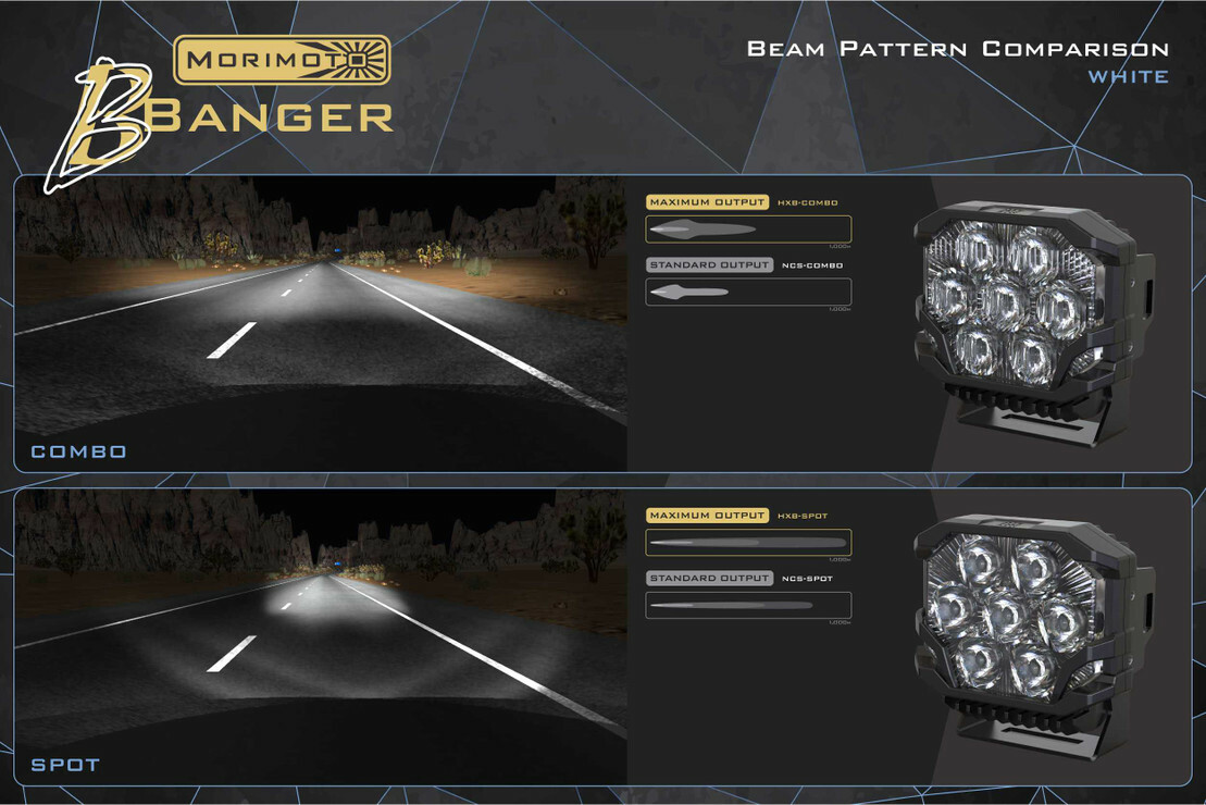 自2008年以來,Morimoto LED 一直在為汽車燈具改裝市場打造最好的照明升級......•不斷推出的產品在包 装上更可靠,最好的同級設計和風格。 BigBanger也繼續了這一傳統。 事實上,我們整個越野射燈陣容的推出,確實給這個類別的老玩家敲響了一記警鐘,讓他們重新回到了自己的遊戲中。 全新的、正在申請專利的BigBanger越野LED射燈系列在美國完成了完整的設計、工程和折磨測試,它們永遠在同級裡都是領先的。